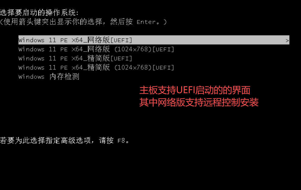 三、较新的主板或是支持UEFI启动的主板 U盘启动后如下图所示