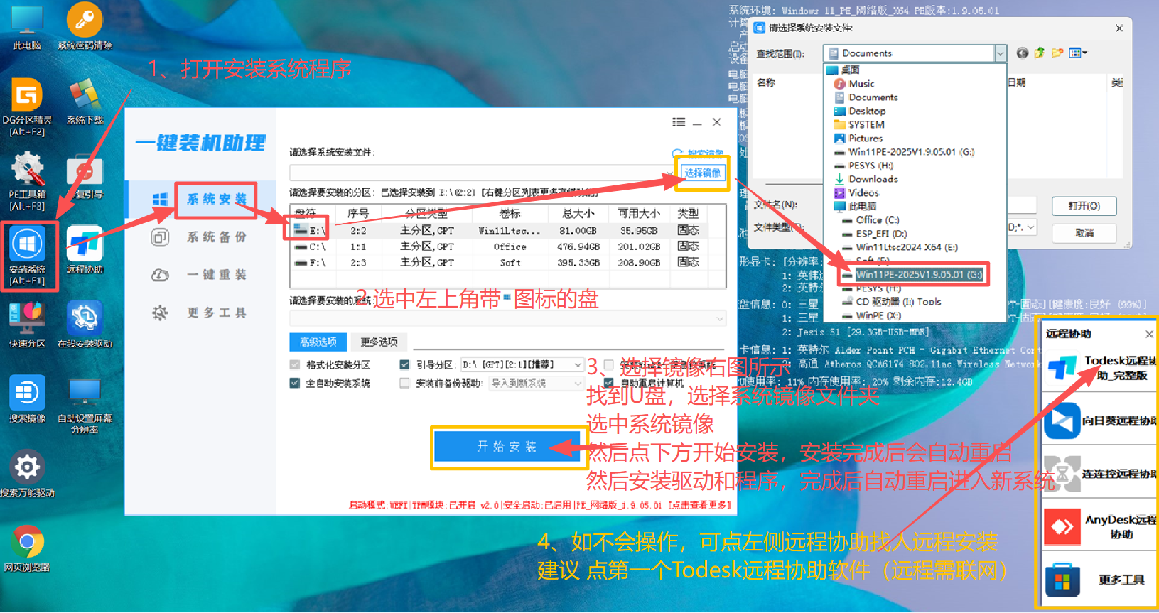 四、选择对应的操作系统一般选择WIndows11联网版,启动完成后按下图说明操作安装(大部分电脑安装完成后会自动安装硬件驱动)