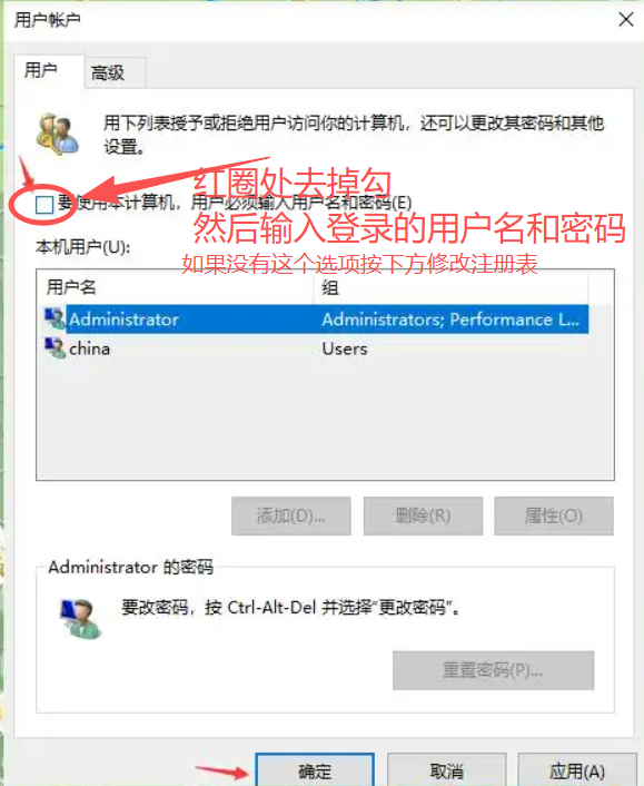 8、运行control userpasswords2自动登录支行命令
