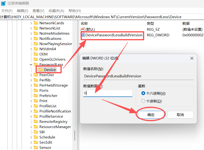 依次打开 WHKEY_LOCAL_MACHINEI\SOFTWARE\Microsoft\WindowsNT\CurrentVersion\PasswordLess\Device这个路径下的DevicePasswordLessBuildVersion数值从2改成0,再次打开用户账户设置就有上图选项了。