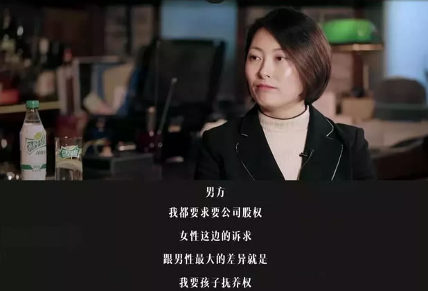 姜思达的《透明人》访谈中采访了处理过400件离婚案的易轶律师,她说:“大多数妈妈在离婚时选择孩子的抚养权多过选择财产,而男方的诉求经常是我要公司股权。”